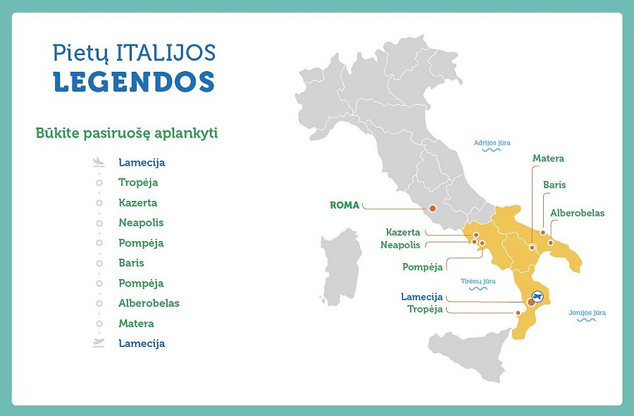 Pažintinė kelionė lėktuvu: Pietų Italijos legendos