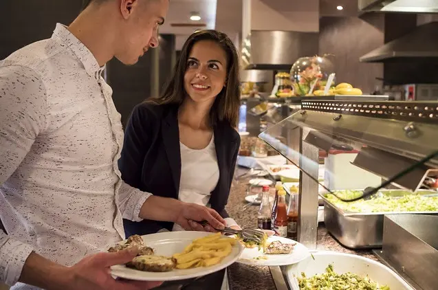 Svečiams kiekvieną dieną patiekiami savitarnos pusryčiai, pietūs ir vakarienė. Komplekso 2 teminiuose restoranuose ruošiami intriguojantys Azijos virtuvės patiekalai, įvairūs bulgarų ir tarptautinės virtuvės valgiai (čia lankytis gali tik ne mažiau kaip 7 nakvynes užsisakę svečiai, o staliukus reikia rezervuoti atvykus). Svečiai laukiami 3 baruose, kuriuose siūlomi vietiniai gėrimai, arbata ir kava. Viename iš barų rengiamos vakaro programos.