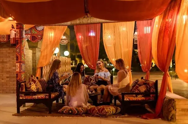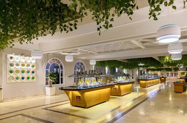 Paplūdimyje įsikūrusiame restorane „II Delfino“ siūlomos šviežiai paruoštos jūros gėrybės, restorane „Dolce Vita“ – itališki skanėstai, pagrindiniame restorane „Palm“ galėsite rinktis savitarnos valgių, o restorane „Fattoosh“ – paragauti libanietiškų patiekalų. Viešbutyje yra 9 barai, tarp jų – baras prie baseino „Tropicana“, taip pat „Bella Vista“ ir „Ali Baba“, kuriame galėsite užsisakyti rytietiškų gėrimų bei parūkyti kaljaną.