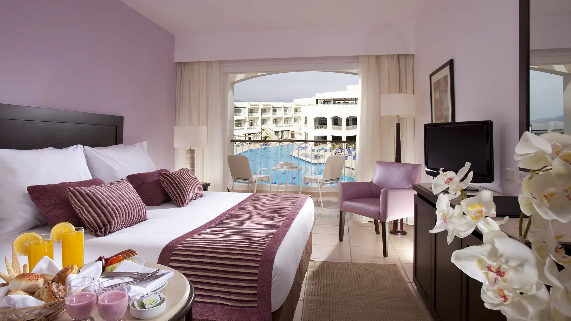 - Kiekvienas kambarys turi vėsų balkoną arba terasą su žavingais baseino ir sodo vaizdais.