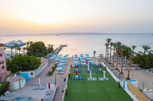 - Viešbutis įsikūręs Hurgados centre. Šiame poilsio komplekse įrengti šviesūs šiuolaikiški numeriai, lauko baseinas ir vandens pramogų parkas, driekiasi privati paplūdimio zona, bet kuriuo paros metu teikiami „viskas įskaičiuota“ tipo valgiai.