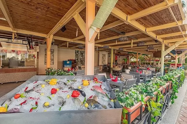 Pusryčių, pietų ir vakarienės metu galėsite mėgautis nuostabiais vietiniais ir tarptautiniais savitarnos valgiais. Kiekvienos dienos valgiaraštyje siūlomi įvairūs teminiai patiekalai. Svečiai taip pat laukiami 3 puikios kokybės restoranuose, kuriuose maistą galima rinktis iš valgiaraščių. Restorane „Piccola“ galėsite paragauti itališkų valgių, o paplūdimio restorane „Sea bride“ tiekiamos tą pačią dieną sugautos jūros gėrybės, kuriomis siūloma mėgautis besigėrint puikiais jūros vaizdais. Svečiai taip pat kviečiami atrasti naujus skonius kinų virtuvės restorane.