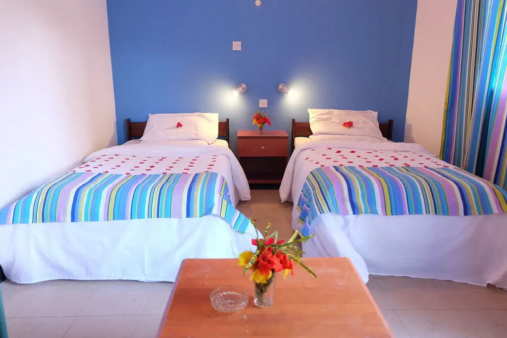 Kiekviename numeryje yra privatus vonios kambarys, o pasirinktuose numeriuose yra balkonas, iš kitų atsiveria vaizdas į baseiną.