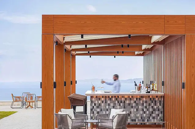 „Angsana Corfu Resort & Spa“ svečiams siūloma leisti laiką terasoje.