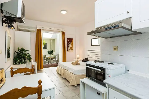 - Visose studijose ir apartamentuose yra balkonai, oro kondicionieriai ir svetainės zonos. Juose taip pat yra virtuvėlės su mini orkaitėmis ir šaldytuvais.