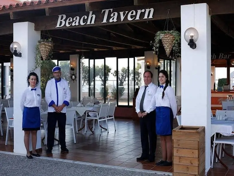 Komplekso restoranuose patiekiami savitarnos pusryčiai, pietūs ir vakarienė. Baseino bare „Poseidon“ siūlomi gaivinamieji gėrimai, ledai ir užkandžiai, o pagrindiniame bare „Phaistos“ vakare galėsite pagurkšnoti vyno ar vietinės rakės.