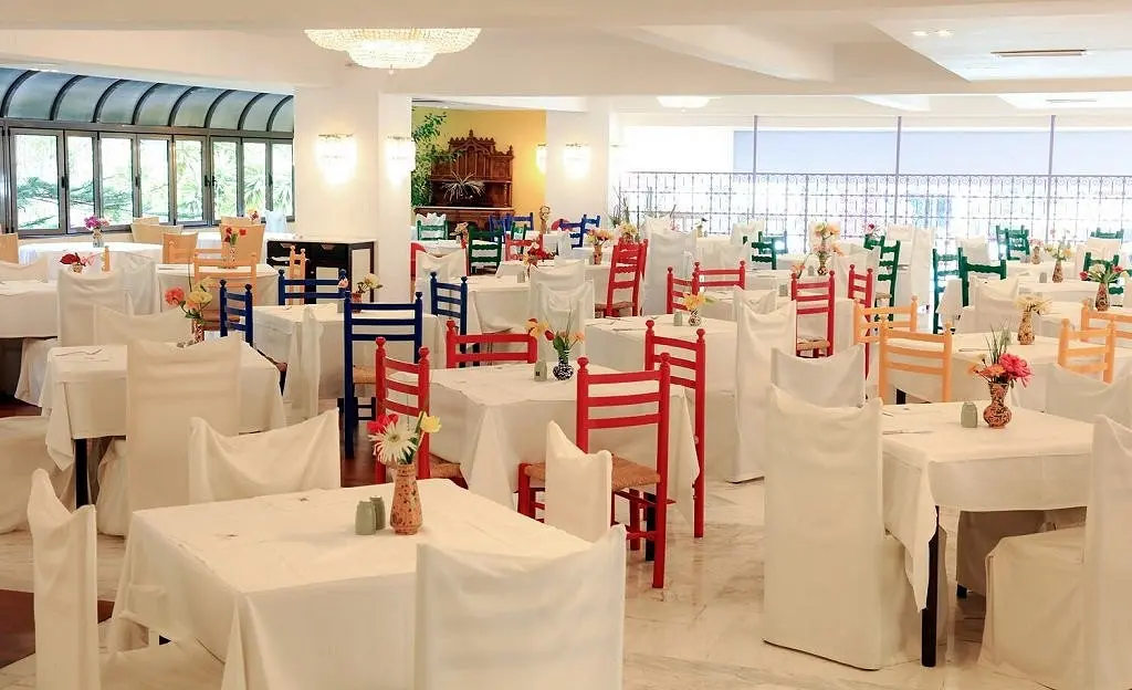 Gausių amerikietiškų savitarnos pusryčių metu maistas ruošiamas svečių akivaizdoje. Pagrindiniame ir prie baseino įrengtame restoranuose patiekiami Viduržemio jūros regiono ir graikiški valgiai. Viešbutyje taip pat yra graikiškų vištienos kepsnelių (souvlaki) ir kebabų kioskas, blyninė bei cukrainė. Vaikams skirtas atskiras baseinas ir žaidimų aikštelė. Viešbutyje dažnai rengiami graikiški vakarai, kurių metu skamba gyva muzika bei vyksta įvairūs pasirodymai. Visose patalpose veikia nemokamas belaidis internetas.