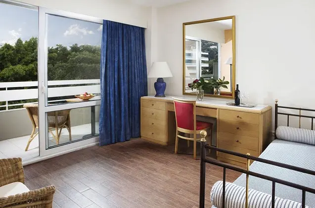 - Žydinčiame, pušimis ir alyvmedžiais apsodintame atogrąžų sode įsikūrusiame viešbutyje galėsite lankytis prie ežero formos baseino įrengtuose baruose ir restoranuose, nemokamai naudotis gultais ir skėčiais. Už 200 m nuo viešbučio plyti Iksijos paplūdimys!