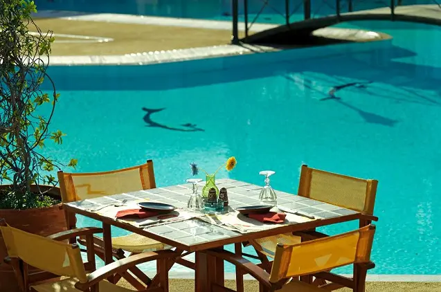 - Pagrindiniame ir prie baseino įrengtame restoranuose patiekiami Viduržemio jūros regiono ir graikiški valgiai.