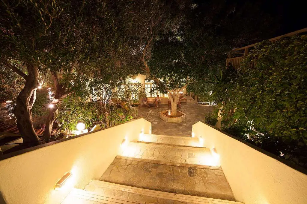 Vos 800 metrų nuo smėlėto paplūdimio žaliuojančiame vešliame sode įsikūrusiame atostogų viešbutyje „Elpida Village“, iš kurio atsiveria stulbinantys Istrono miestelio ir jūros vaizdai, yra žavingas vidinis kiemas ir lauko baseinas.