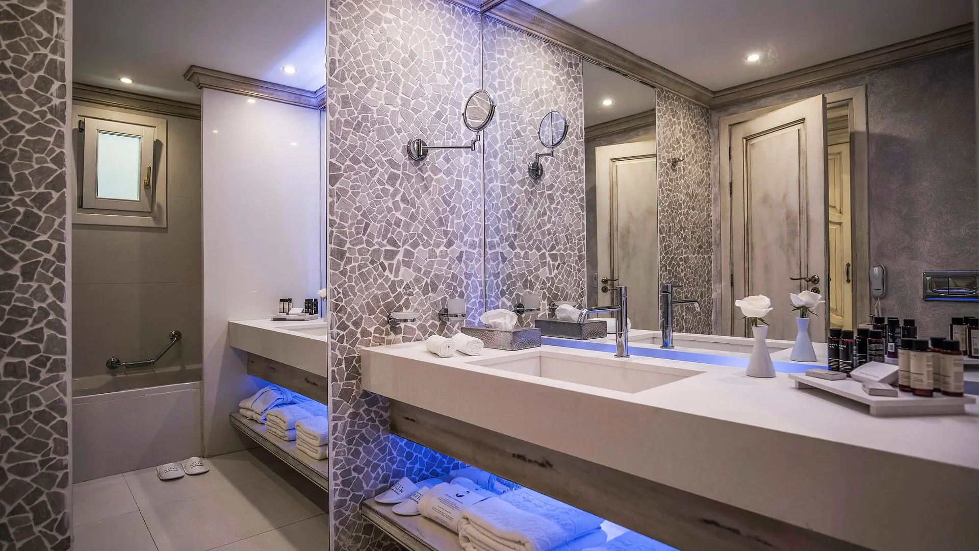 Elegantiškuose numeriuose ir bungaluose yra oro kondicionieriai ir palydovinės televizijos kanalus rodantys LCD televizoriai. Numeriuose taip pat yra kasdien papildomi mini barai ir „Nespresso“ kavos virimo aparatai. Visuose numeriuose įrengti balkonai arba terasos. Vonios kambariuose rasite higienos reikmenis, chalatus, šlepetes, svarstykles ir plaukų džiovintuvus. Svečiams suteikiami paplūdimio ir baseino rankšluosčiai.