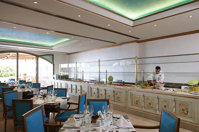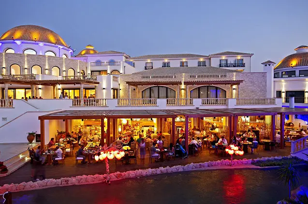 Teritorijoje yra 7 restoranai, tarp kurių – pagrindinis savitarnos restoranas ir maistą iš valgiaraščio siūlantys restoranai (kretietiška taverna, tex-mex, Azijos ir Italijos virtuvių bei žuvies restoranai). Apgyvendinimo įstaigoje veikia 5 barai, įskaitant šampano, vyno ir sušių barus. Du barai įrengti prie baseinų, o trys – pagrindiniame pastate.