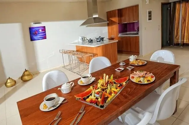 Visuose šiuolaikiškais baldais apstatytuose „Royal Heights“ komplekso numeriuose yra stilingos virtuvės su šaldytuvais ir mikrobangų krosnelėmis, oro kondicionieriai ir svetainės erdvės su televizoriais. Šalia vilų žaliuoja gražus lauko baldais apstatytas sodas.