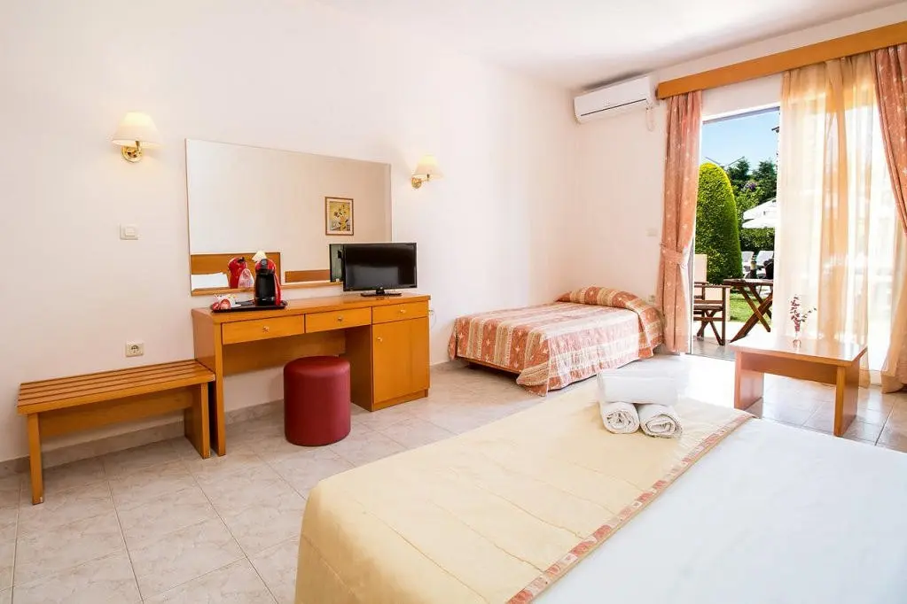 - Rode, Koskinou kaimelyje, už 200 m nuo Reni paplūdimio, žaliuojančioje aplinkoje įsikūrusiame viešbutyje su baseinu siūloma apsistoti studijose. Jose yra baldais apstatyti balkonai, iš kurių atsiveria vaizdas į sodą.