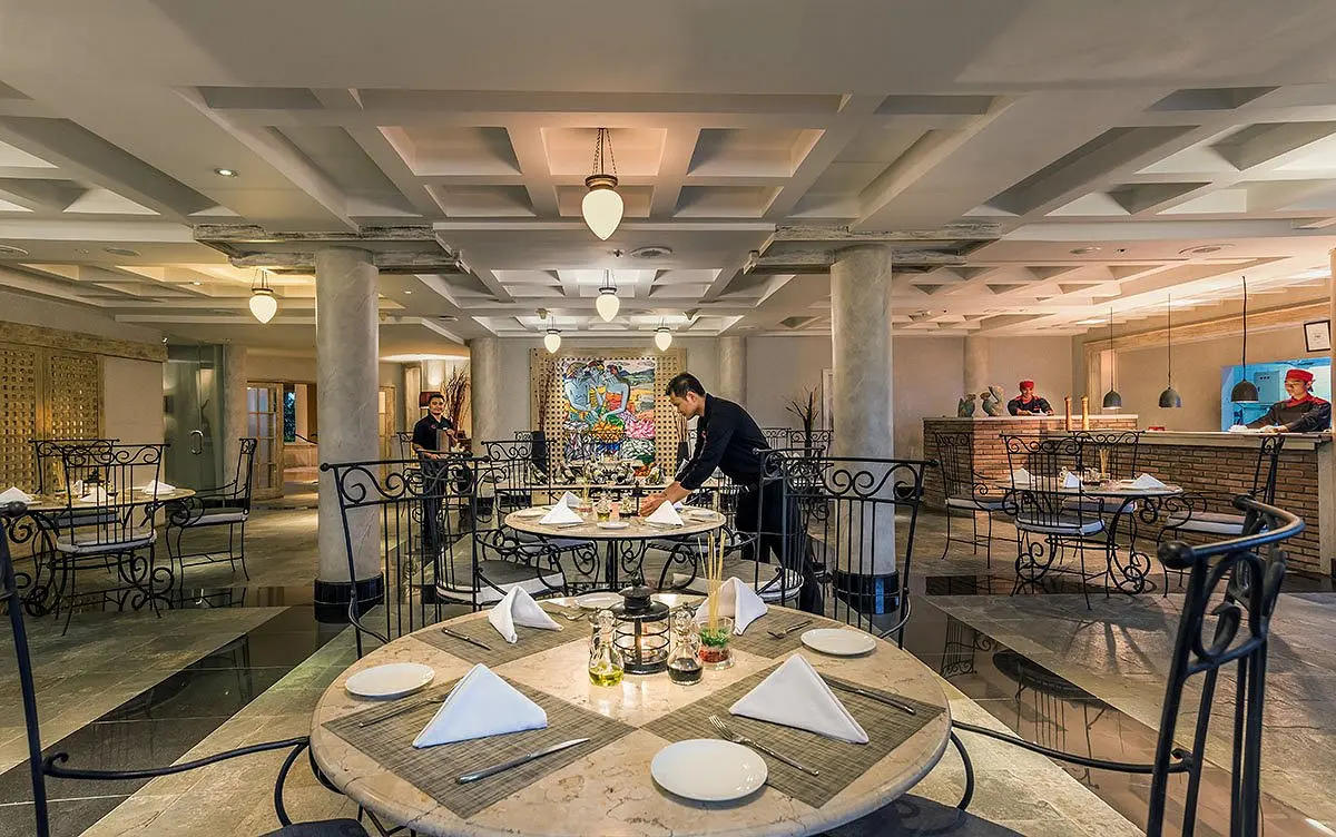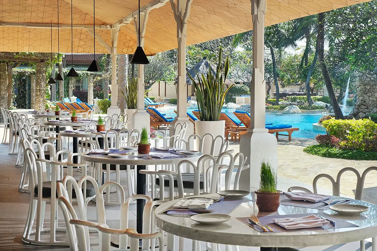 Gausūs savitarnos pusryčiai rytais patiekiami restorane „Grand Benoa“, iš kurio atsiveria atogrąžų sodo ir vandenyno vaizdai. Viešbučio restoranuose siūlomi japonų, italų, azijiečių virtuvių ir tarptautiniai valgiai.