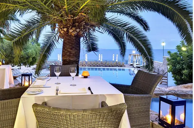 Viešbutis siūlo à la carte ir savitarnos restoranus, kurių specializacija – Viduržemio jūros regiono patiekalai. Yra 2 poilsio barai su įspūdingais jūros vaizdais.