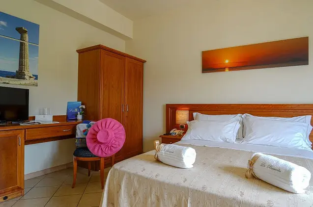 - Viešbutyje „La Bussola Hotel“ yra didelis sodas su baseinu, įrengtos nemokamos vietos automobiliams. Svečiams siūloma apsistoti numeriuose su balkonais, kuriuose veikia nemokamas belaidis internetas.