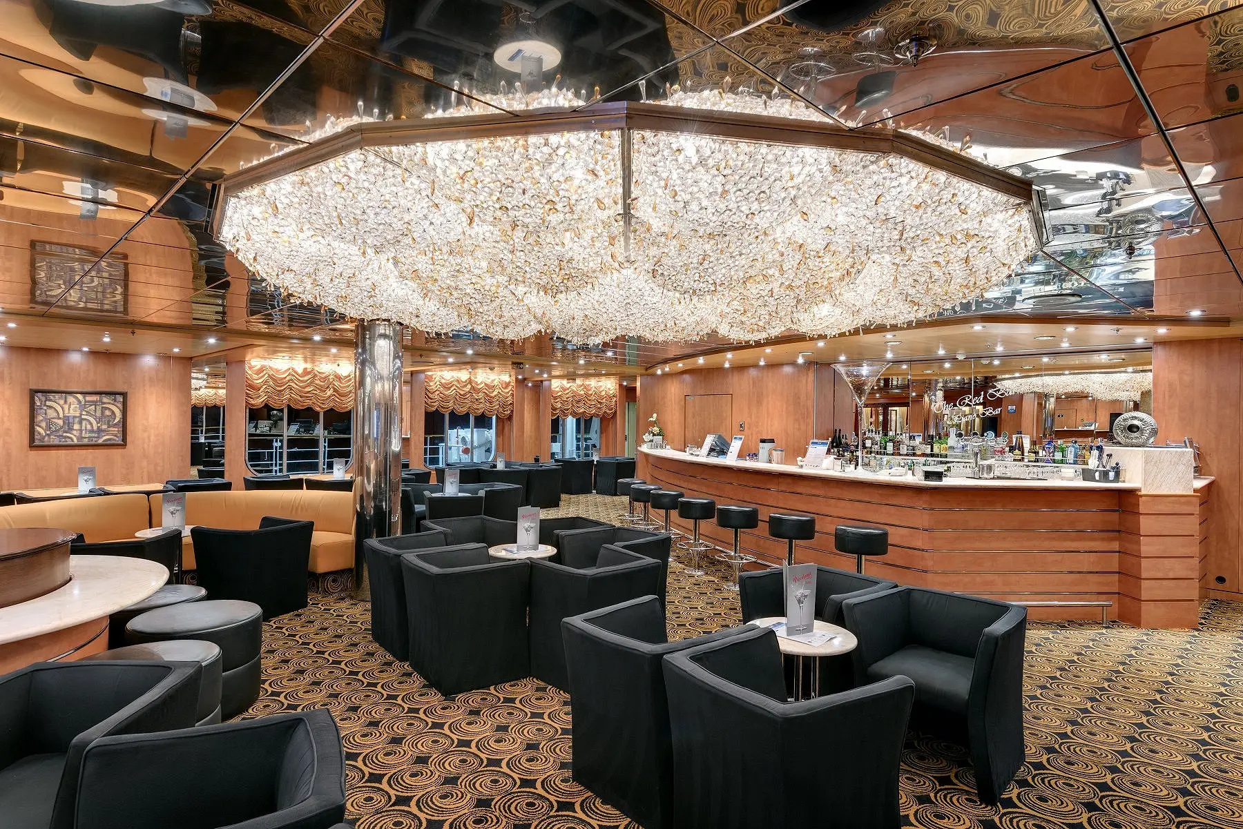 - Kajutė su langu - erdvi, apie ~15–16 m² kajutė su vaizdu į jūrą per langą, dvigule lova, sofa-lova arba dviaukšte lova, vonios kambariu, televizoriumi, seifu ir mini baru.