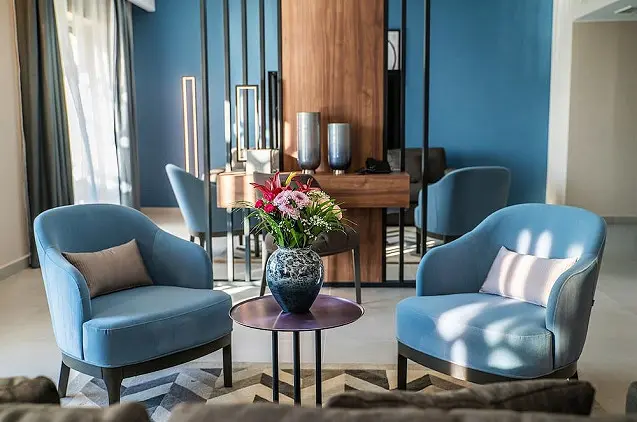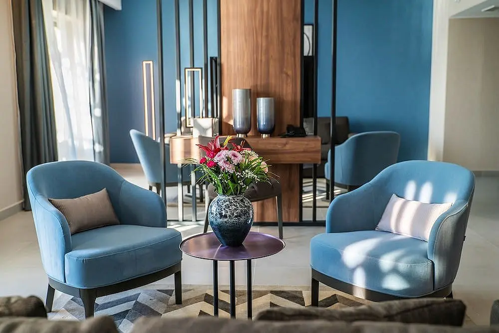 Visi kambariai ir liukso (suite) numeriai su didžiuliais langais, pro daugelį kurių atsiveria lagūnos vaizdai, yra apipavidalinti prabangiais audiniais. Kiekviename iš jų yra palydovinius kanalus rodantis televizorius, mini baras ir patogi svetainės erdvė.