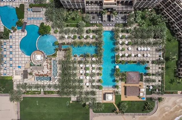 Šis 5 žvaigždučių kurortas yra įsikūręs šiauriniame Arabijos pusiasalio gale. Viešbutis yra už 1,5 km nuo privataus balto smėlio paplūdimio, yra atskiros vaikų žaidimų aikštelės ir siūlomos vilos su baldais apstatytais balkonais ir vaizdais į Arabijos jūrą.