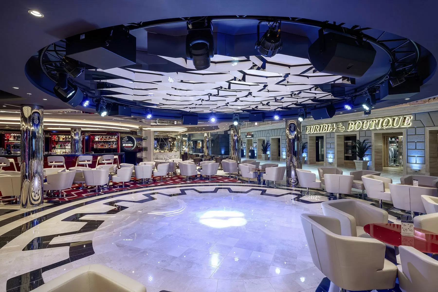 MSC Euribia išskirtiniai bruožai apima panoraminius tiltelius ir liftus su stiklo sienelėmis, leidžiančiais mėgautis nuostabiais vaizdais į jūrą. Taip pat laive yra modernios, erdvios bendros zonos su dideliais langais, elegantiškas dizainas, interaktyvūs barai bei inovatyvios pramogų erdvės, suteikiančios prabangų ir patogų kruizo potyrį.