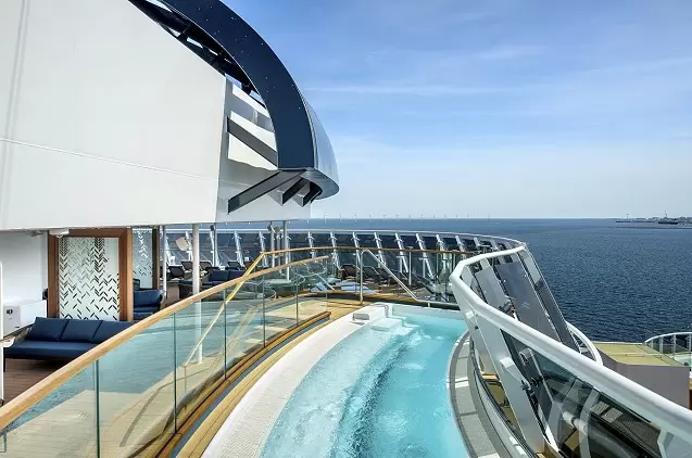 - Kajutė su balkonu - standartinė kajutė apie ~17 m², su privačiu balkonu (~3–10 m²), dvigule lova, sofa-lova arba dviaukšte lova, vonios kambariu, televizoriumi, seifu ir mini baru.