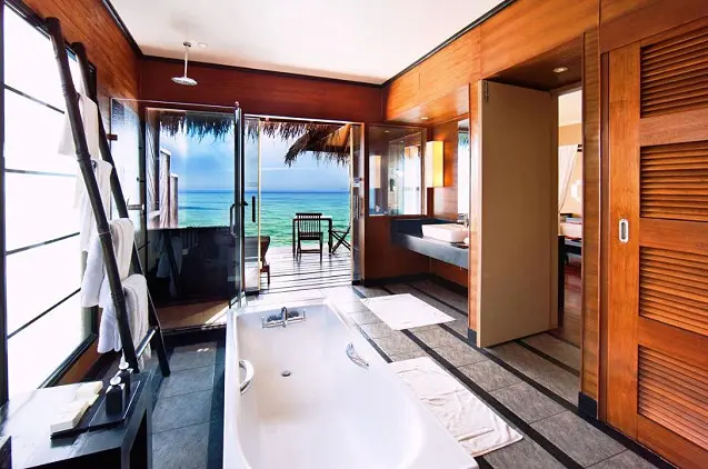 - Privačiame paplūdimyje arba virš vandens įrengtose vilose yra oro kondicionieriai, palydovinės ir kabelinės televizijos kanalus rodantys televizoriai ir mini barai.