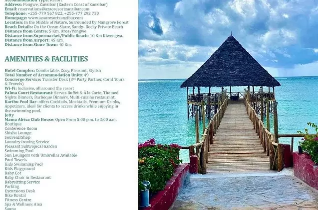 Pongvėje, Zanzibare, ant Indijos vandenyno kranto įsikūręs viešbutis „Azao Resort & Spa“ – puiki vieta pailsėti. Čia įrengtas lauko baseinas ir bendrose patalpose veikia nemokamas belaidis internetas.