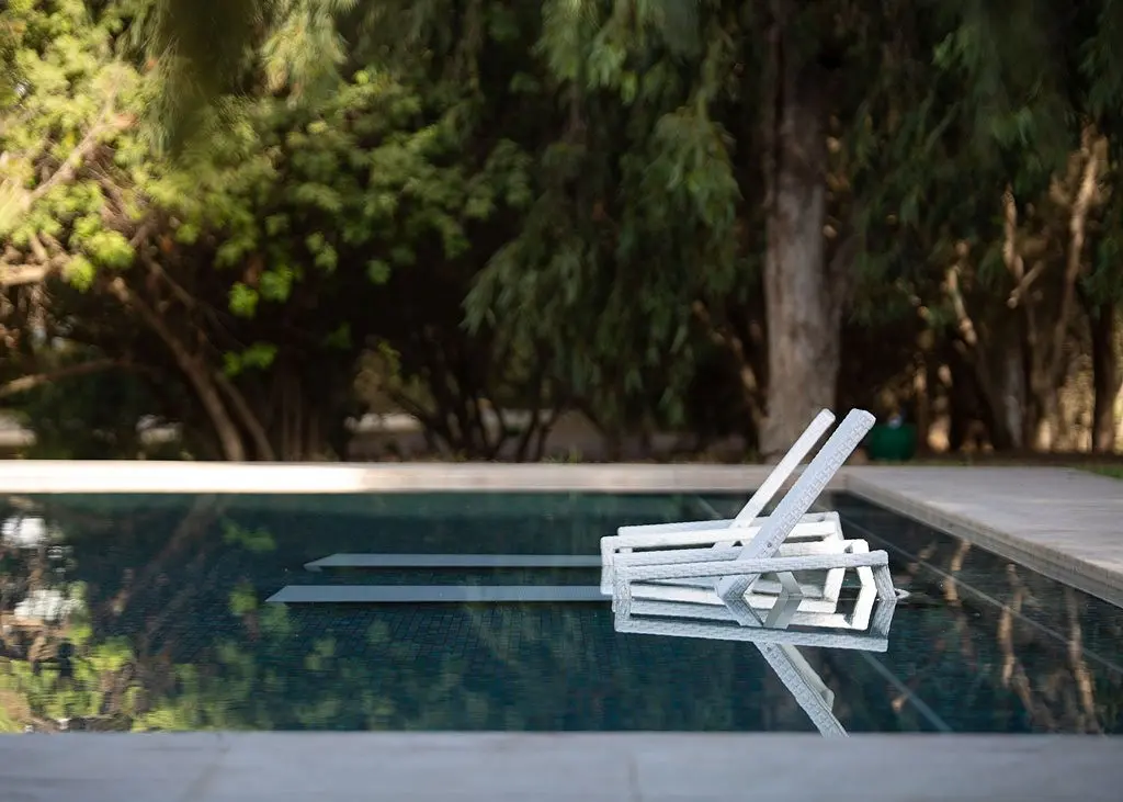 - Iš lauko baseino atsiveria vaizdas į vandenyną, jį supa gultai ir terasa.
