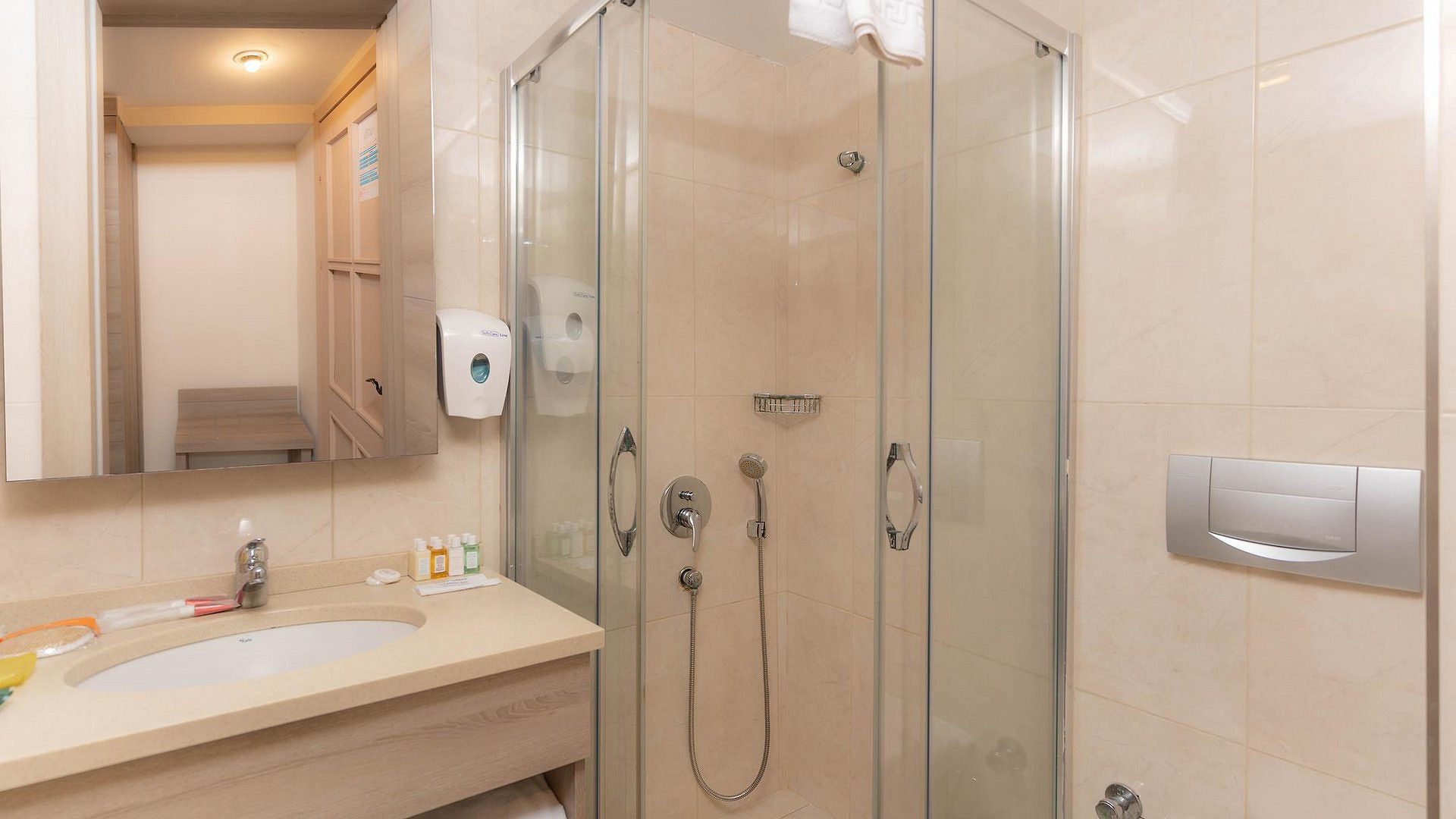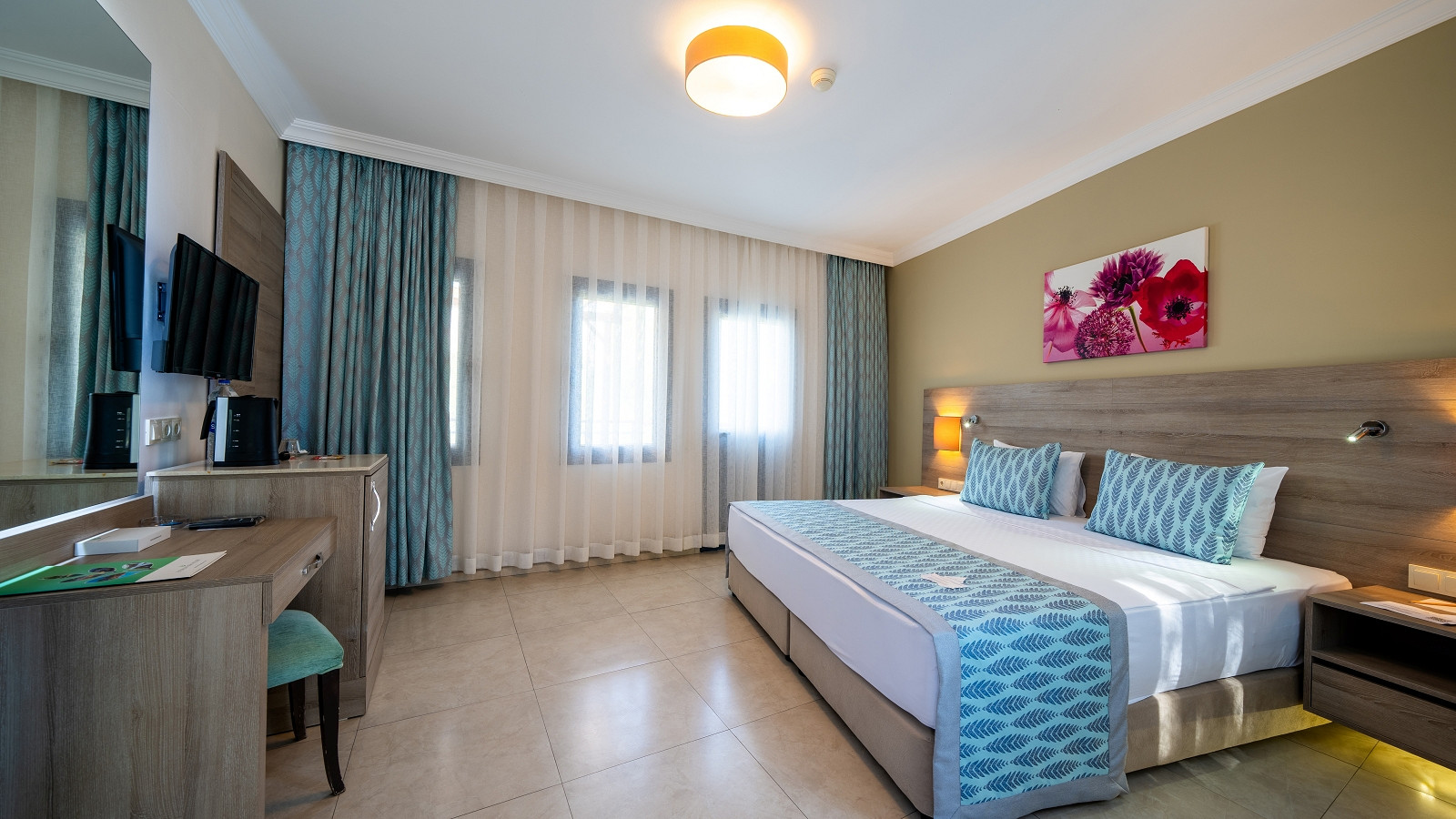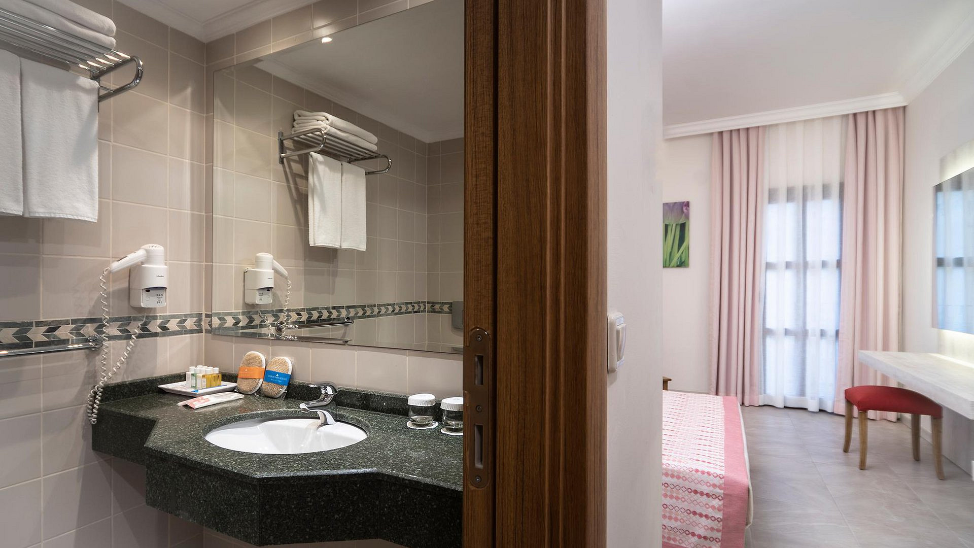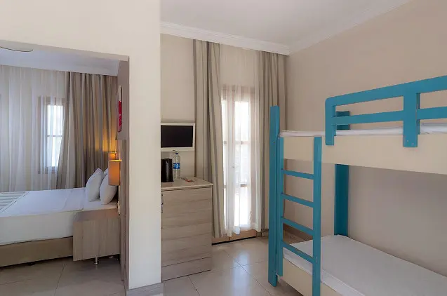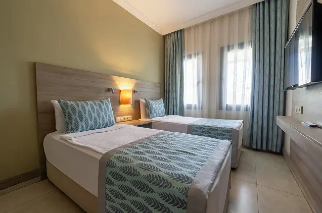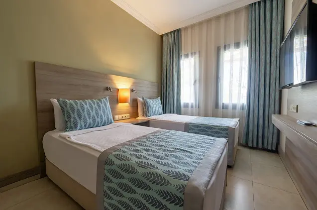Visuose „Bodrum Park Resort“ numeriuose yra palydovinius kanalus rodantys televizoriai, balkonai ir vonios kambariai.