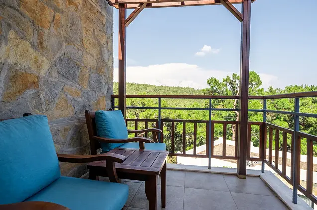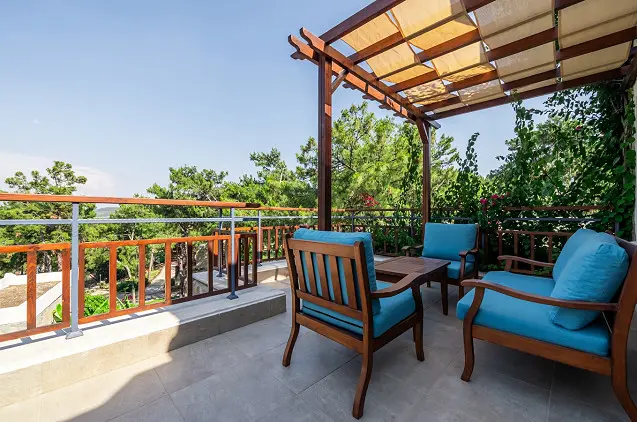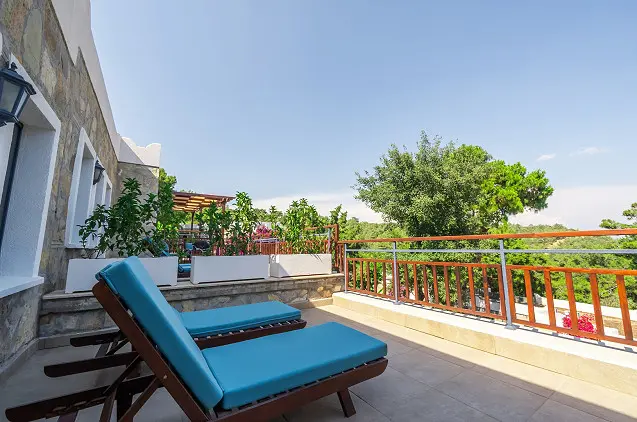 - Terasa su vaizdu į saulę