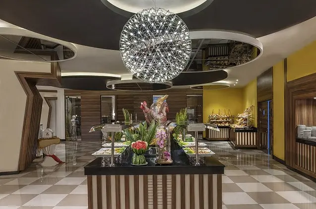 Pagrindiniame savitarnos restorane pusryčiams, pietums ir vakarienei patiekiami tarptautinės virtuvės valgiai. Viešbutyje taip pat yra patiekalus iš valgiaraščio siūlantis restoranas, kuriame ruošiami meksikietiški, itališki, graikiški, prancūziški bei Tolimųjų rytų virtuvės valgiai. Užsukę į barą galėsite užsisakyti įvairių alkoholinių ir gaiviųjų gėrimų.