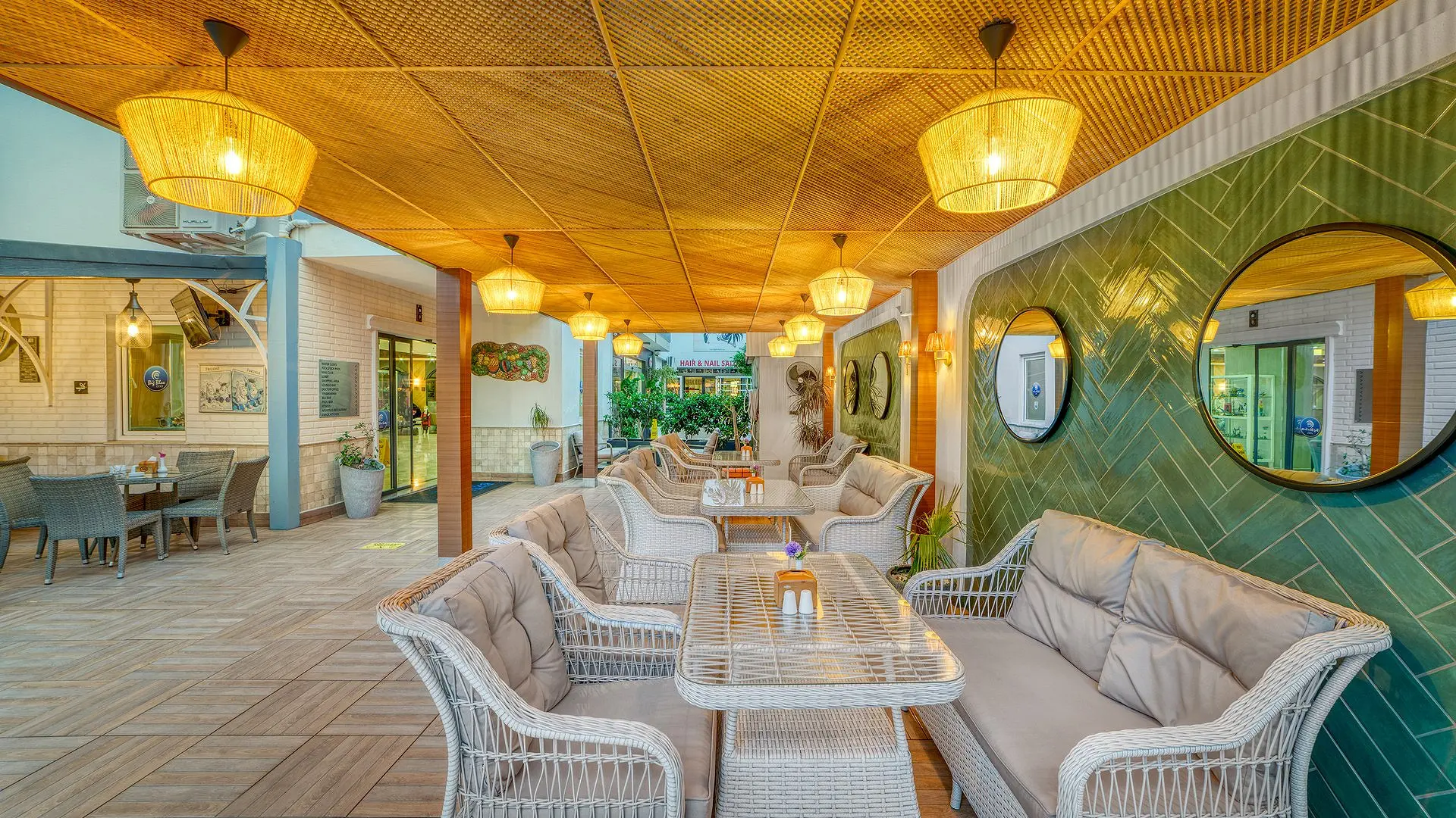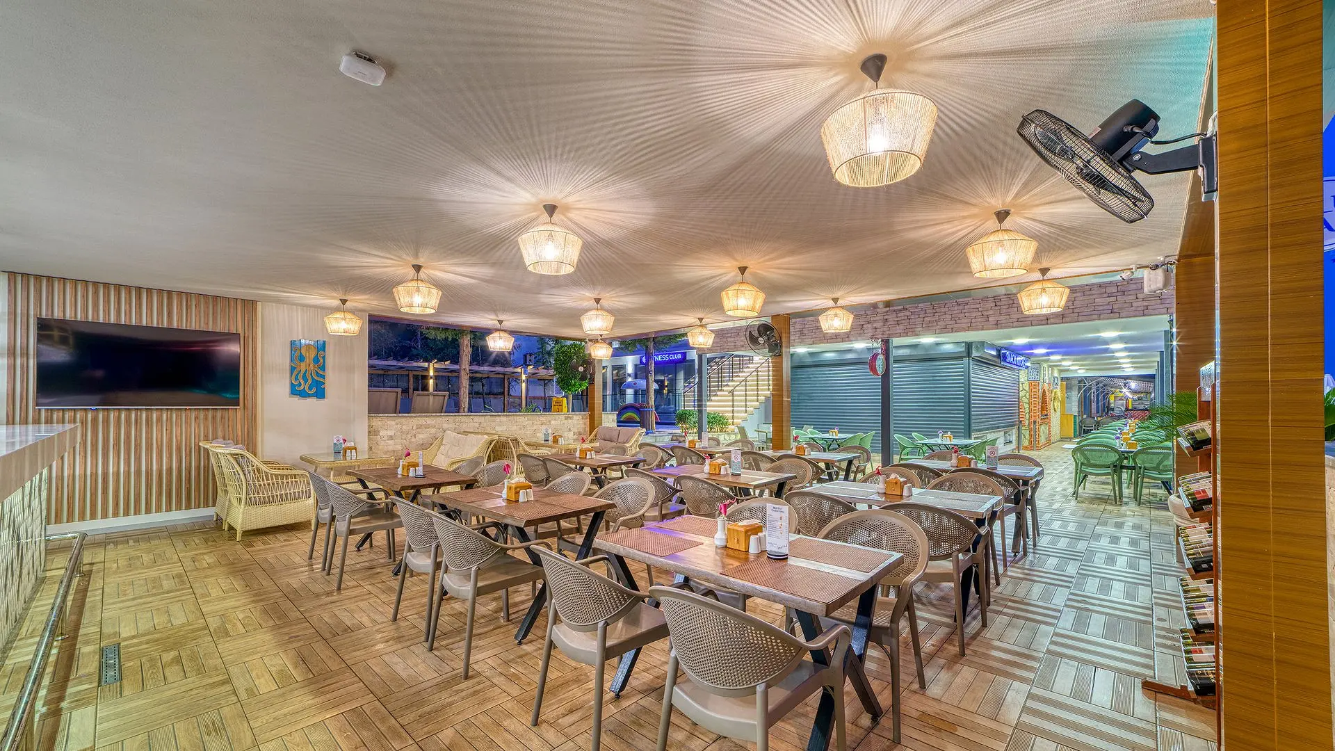 Restorane siūlomi Turkijos bei tarptautinės virtuvės patiekalai. Bare galėsite pasivaišinti įvairiais alkoholiniais bei nealkoholiniais gėrimais.