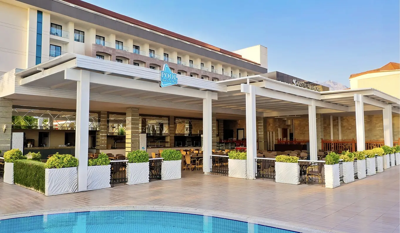 Vos už kelių žingsnių nuo pajūrio įsikūrusiame atostogų viešbutyje „Crystal Aura Beach Resort & Spa“ įrengta privati paplūdimio zona, SPA centras ir vidaus bei lauko baseinai. Svečiams siūloma apsistoti numeriuose su oro kondicionieriais, palydovinius kanalus rodančiais televizoriais ir balkonais.
