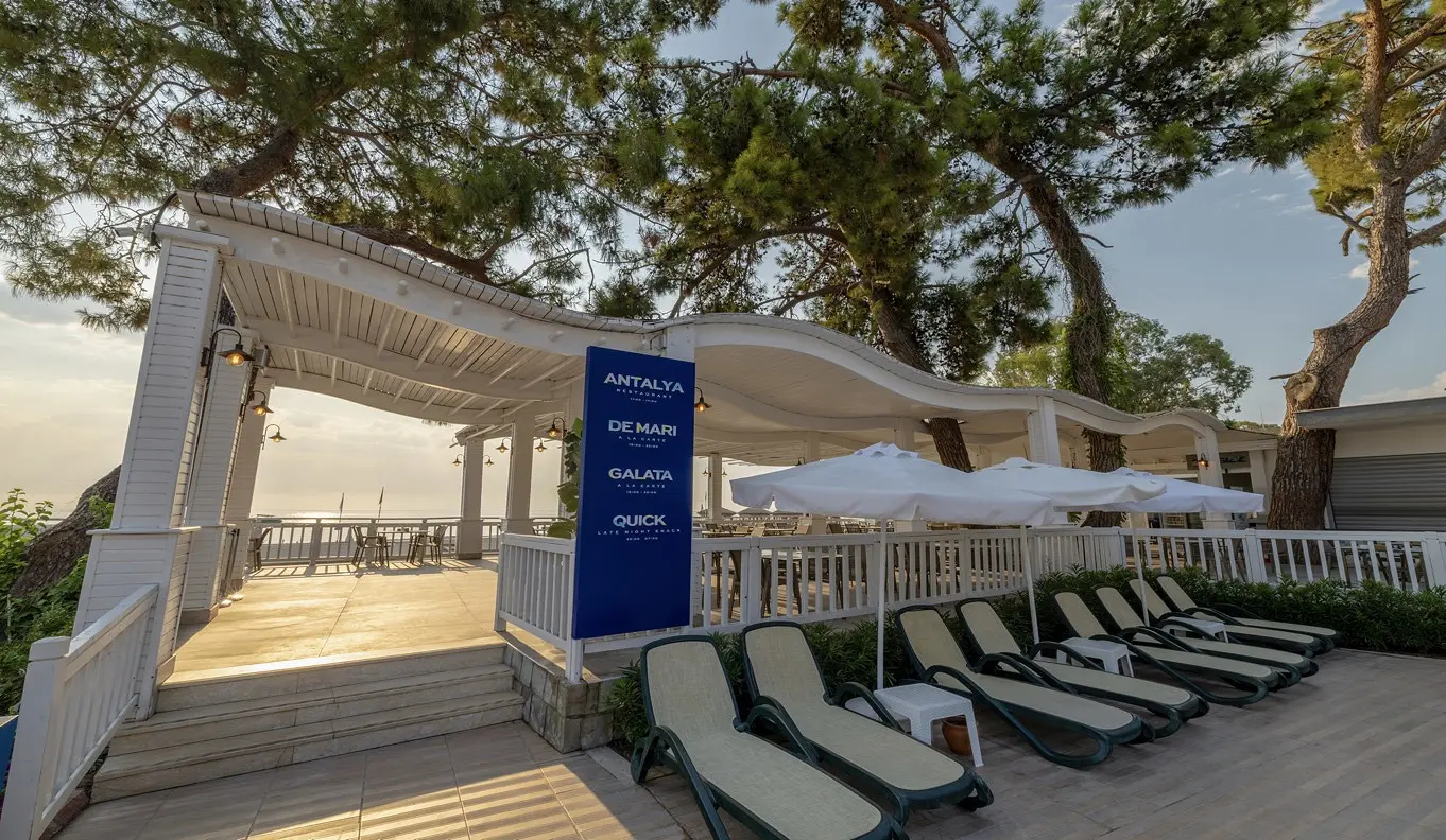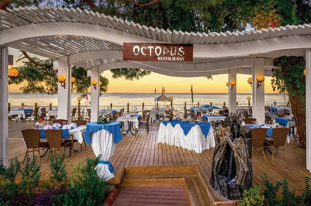 Svečiams kasdien patiekiami savitarnos pusryčiai, pietūs ir vakarienė bei visą dieną siūlomi pyragaičiai, sausainiai ir užkandžiai. Restoranuose galėsite paskanauti iš valgiaraščio pasirenkamų turkų, italų ir jūros gėrybių patiekalų. Viešbutyje gausu barų, kuriuose siūloma pagurkšnoti kokteilių ir gaivinančių bei kitų įvairių gėrimų.