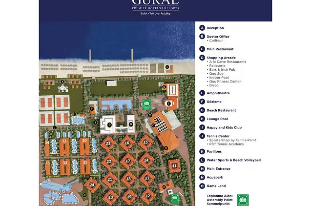 5 žvaigždučių Gural Premier Belek viešbutis įsikūręs priešais Viduržemio jūrą, pušynų apsuptoje 130 000 kv. metrų ploto teritorijoje, kurioje įrengtas vandens pramogų parkas su 16 čiuožyklų. Viešbutyje galima atsipalaiduoti turkiškame hamame bei pasilepinti europietiškais ir Tolimųjų Rytų masažais, vandens terapijomis, jauninančiomis, dėmes šalinančiomis, liekninančiomis, klasikinėmis odos ir įvairiomis kitomis kūno procedūromis.
