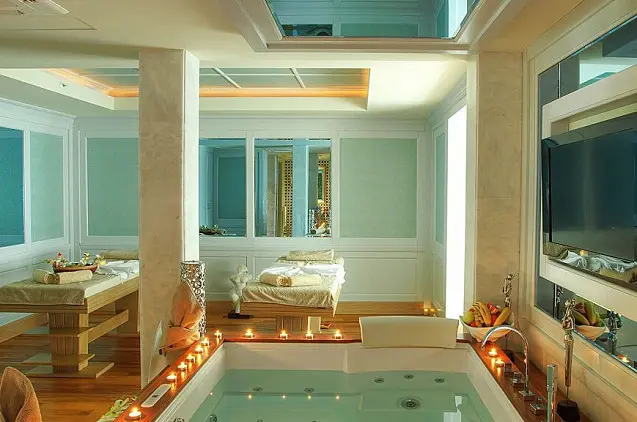 - Viešbutyje yra 23 tarptautinio lygio restoranai, 6 000 kv. m erdvus SPA, turkiška pirtis, odos priežiūros paslaugos.