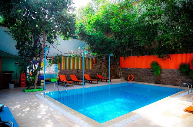 - Savitarnos restorane patiekiami turkiški valgiai. Galite mėgautis maistu sode, šalia baseino.