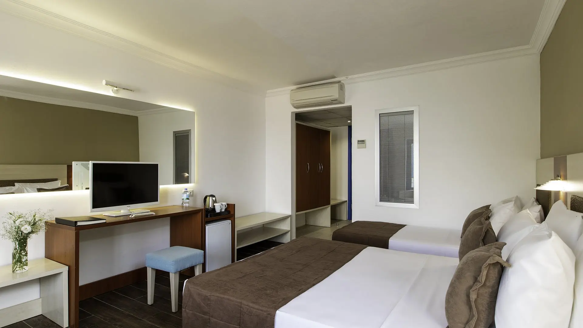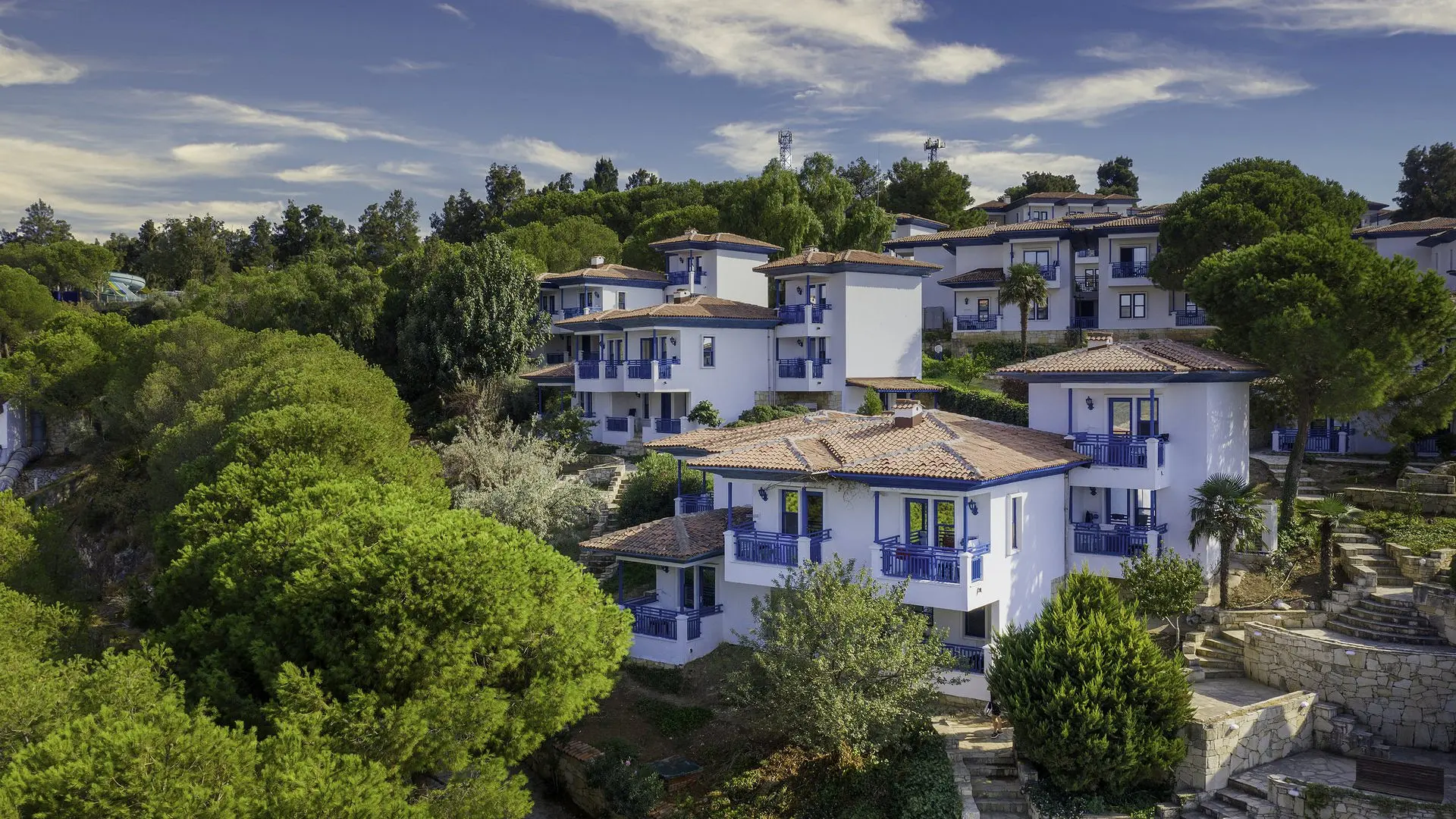 Visuose komplekso numeriuose yra balkonai arba terasos, palydovinius kanalus rodantys televizoriai ir mini barai. Iš kai kurių numerių atsiveria Egėjo jūros vaizdai.