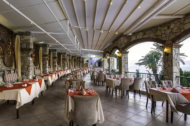 Komplekse yra 6 maitinimo įstaigos, tarp jų – užeiga „Agora“, kurioje vyksta gyvai atliekamos turkiškos muzikos koncertai, ir restoranas „Pescatore“, kuriame patiekiami žuvies ir jūros gėrybių valgiai. Komplekse taip pat yra 4 barai, kuriose siūlomi tarptautiniai gėrimai ir kokteiliai.