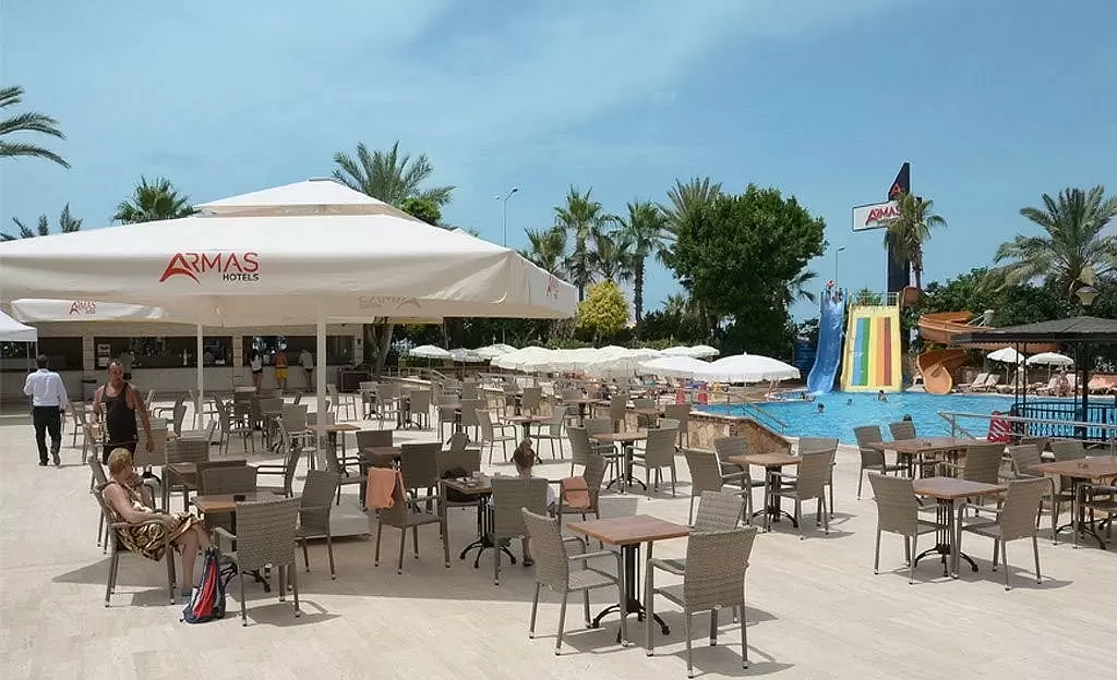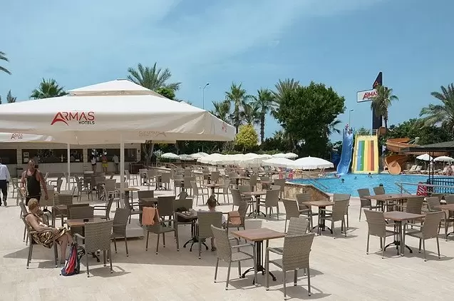 Svečiams kasdien tiekiami savitarnos pusryčiai. Patiekalus iš valgiaraščio siūlančiuose ir savitarnos restoranuose ruošiami vietiniai bei tarptautiniai valgiai. Gaivinančiais gėrimais ir užkandžiais galėsite mėgautis baseino, paplūdimio, vestibiulio bei diskotekos baruose.