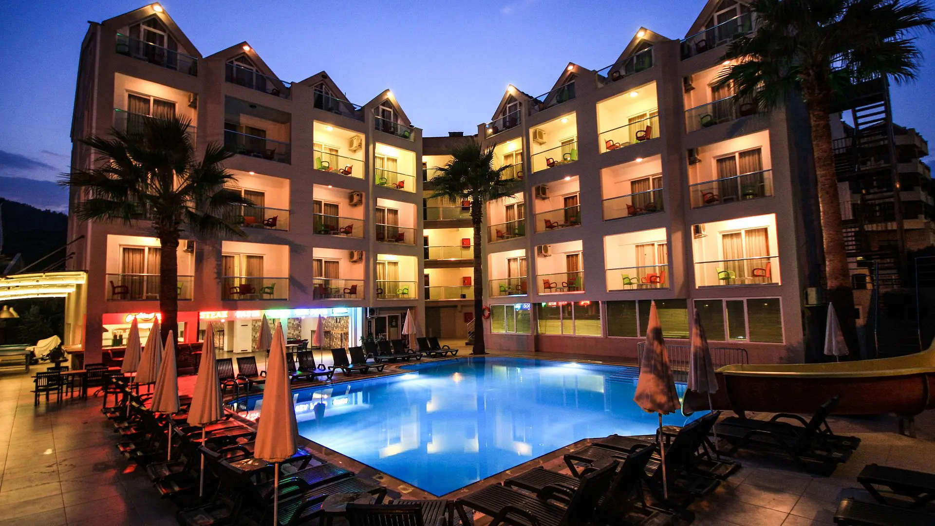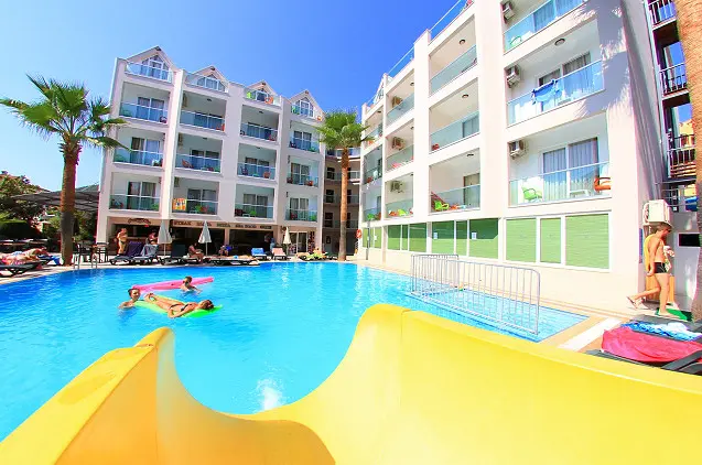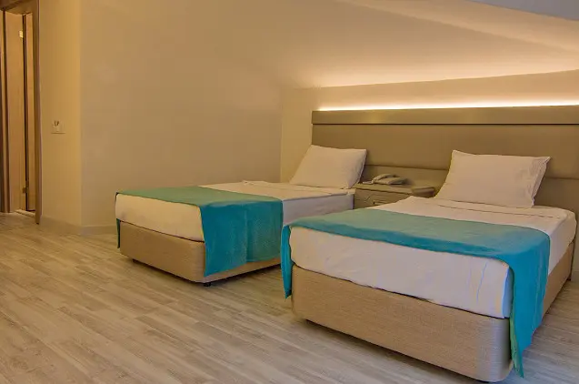 - Viešbutyje yra bendras poilsio kambarys, restoranas, vandens parkas ir sezoninis lauko baseinas.