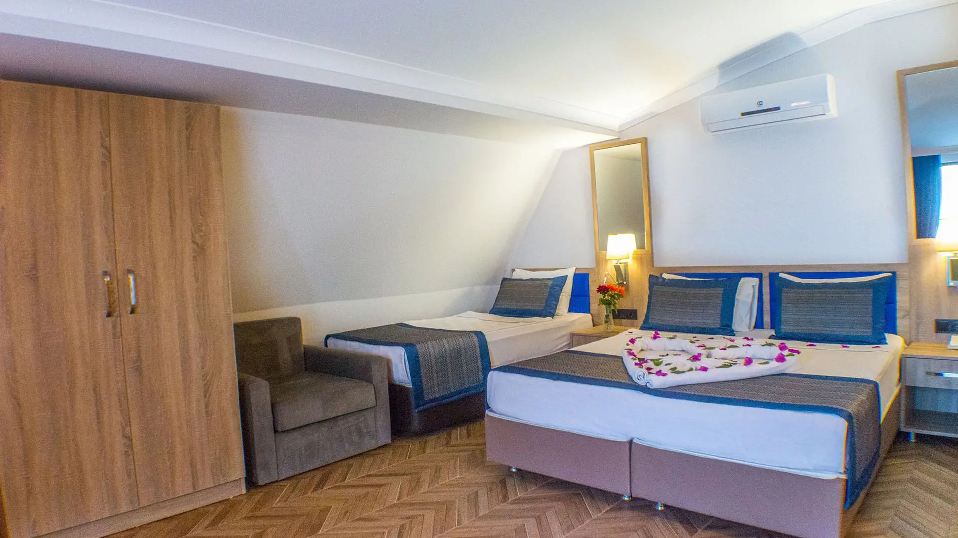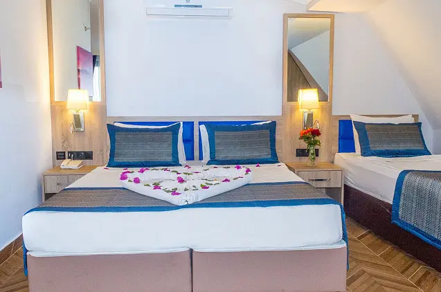 - Viešbutyje įrengta pirtis ir hamamas, o paplūdimyje galima užsiimti vandens sportu. Numeriuose su oro kondicionieriumi yra seifas, televizorius ir vonios kambarys su plaukų džiovintuvu.