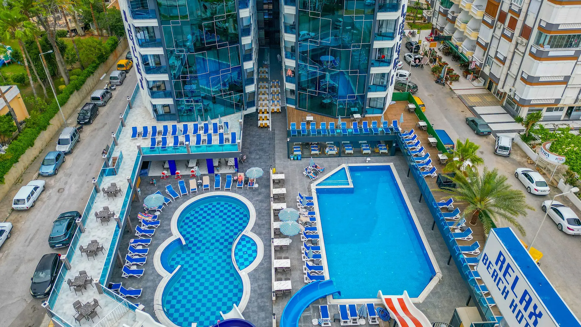Visuose viešbučio kambariuose yra balkonai su vaizdu į baseiną. „Relax Beach Hotel“ numeriuose yra plokščiaekraniai televizoriai ir šlepetės.
