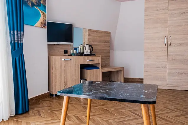 - Viešbutis įsikūręs Alanijoje, kitoje kelio pusėje nuo smėlio ir žvirgždo paplūdimio. Svečių patogumui įrengtas lauko baseinas suaugusiems ir vaikams, restoranas bei baras prie baseino.