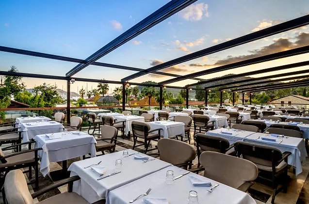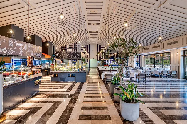 Visą dieną dirbančiame savitarnos restorane „Turquoise“ patiekiami tarptautiniai valgiai, o restorane „People’s“ visą dieną siūlomas maistas iš valgiaraščio. Apsilankę „Azur“ galėsite nuošalioje aplinkoje pasimėgauti saulėtų kraštų virtuvių patiekalais.