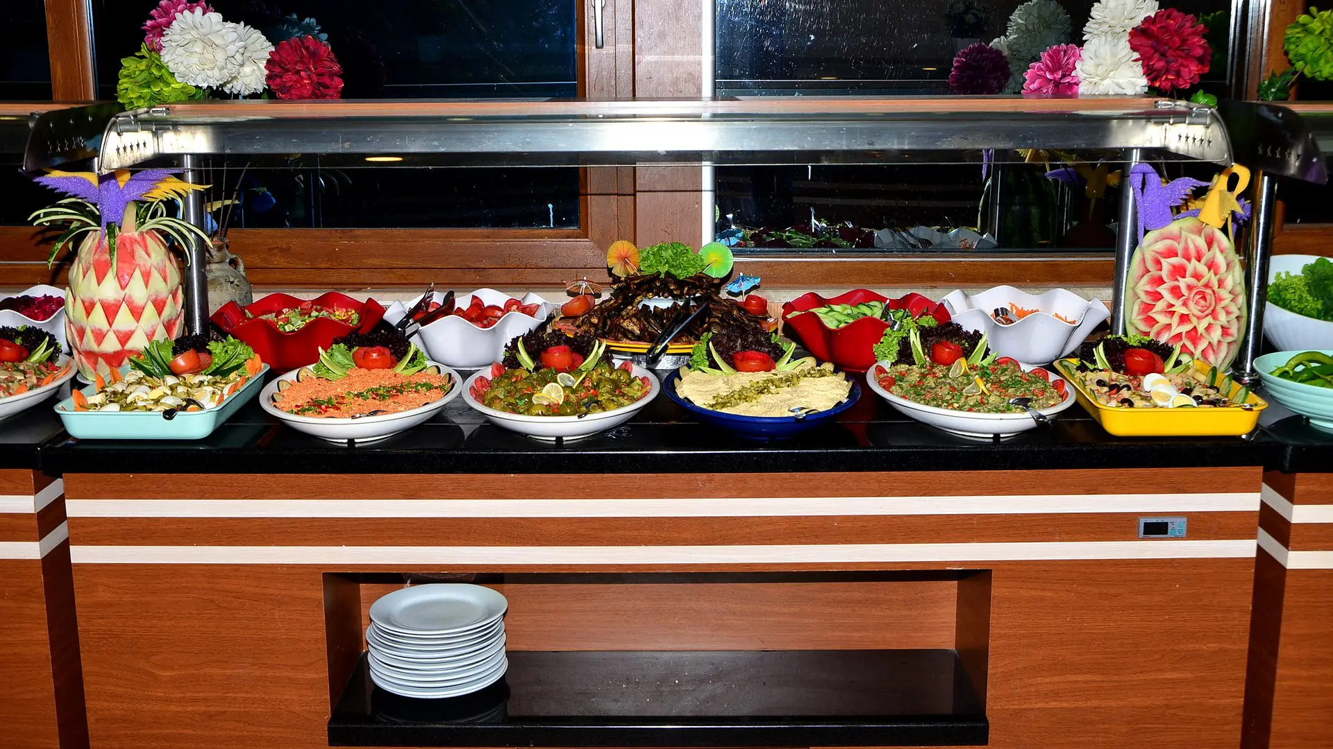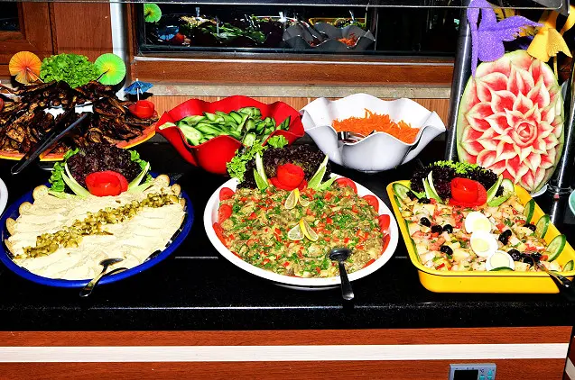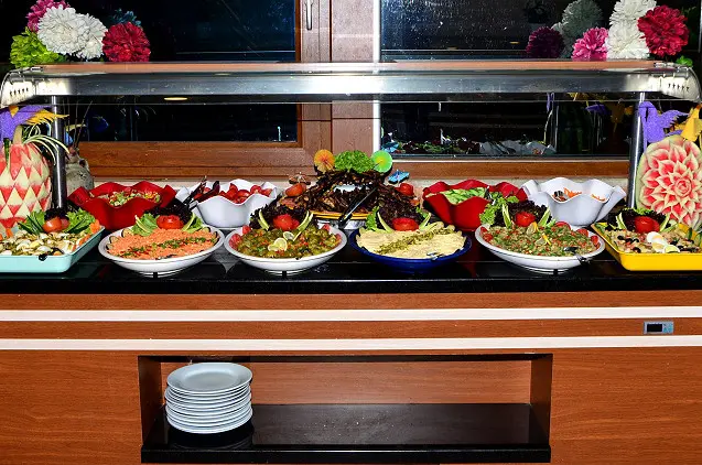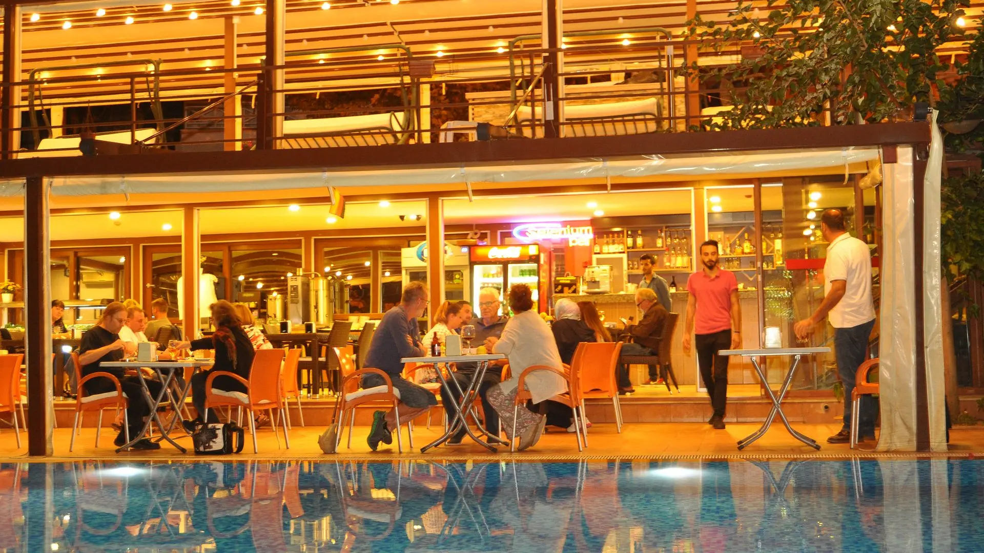 Restorane patiekiami pusryčiai ir vakarienė su à la carte ir savitarnos patiekalais. Svečiai gali mėgautis maistu lauke, šalia baseino.